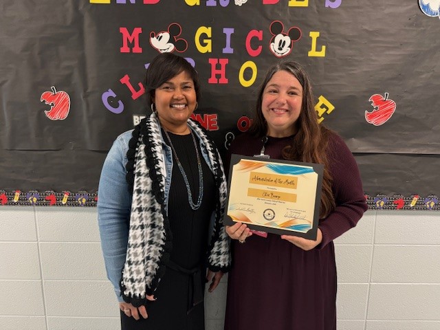 This morning, we celebrated Mrs. Ellen Bosarge as our December District Administrator of the Month! She received a certificate, a $100 restaurant gift card, and a box of Mardi Gras-themed cookies from Guild Mortgage Gulfport.